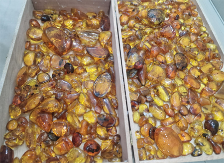 It's a fantastic lot of amber fossils, with over 399 specimens, including small insects, leaves, and more. It's a truly special lot with a variety of fossils in different sizes and with varying values. Great for collectors or ideal for resale if you own a jewelry or gemstone shop. The lot includes mini, small, medium, and large gemstones.